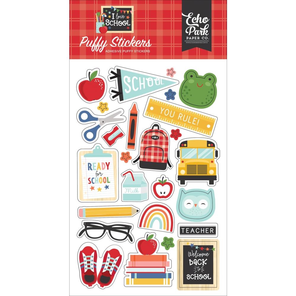 Echo Park - I LOVE SCHOOL Puffy Stickers - 3D samolepky
