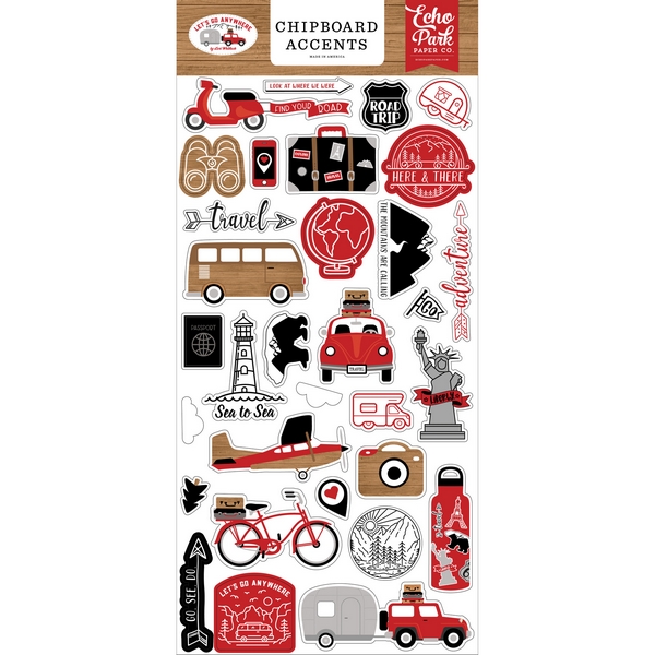 *** Echo Park - LET´S GO ANYWHERE Chipboard Accents - kartonové výřezySkladem: 370 Kč58 Kč bez DPH