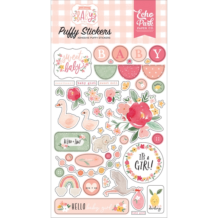*** Echo Park - WELCOME BABY GIRL Puffy Stickers - 3D samolepky
