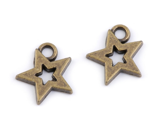 Kovový přívěsek (220642) - HVĚZDIČKY (10 ks) / staromosaz