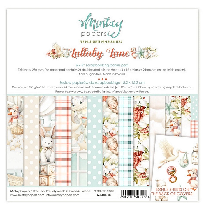 Scrapbookové čtvrtky s oboustranným potiskem. Sada obsahuje 24 archů (4 x 6 různých oboustranných designů) + 2 bonusové archy k vystřihování na zadní straně obálky. Acid & lignin free, archivální kvalita. Gramáž: 250 g/m2. Velikost archu: 15,2 x 15,2 cm.