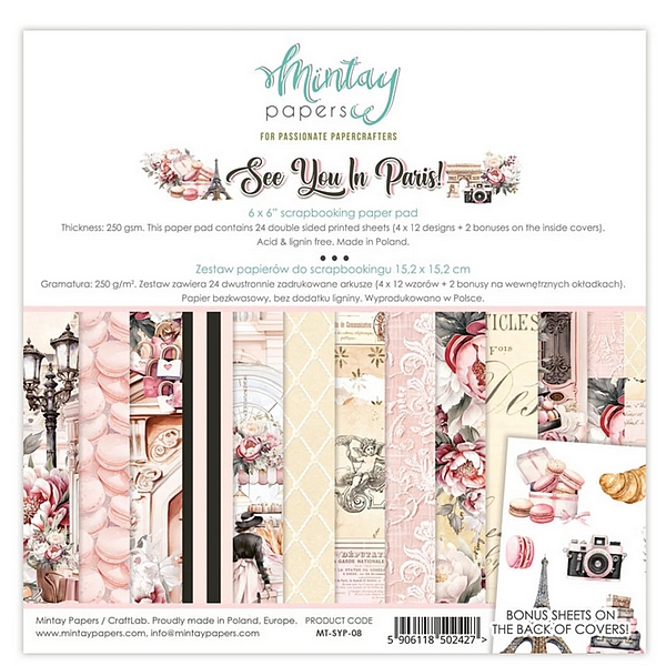 Mintay - SEE YOU IN PARIS 6x6 - scrapbookové čtvrtky