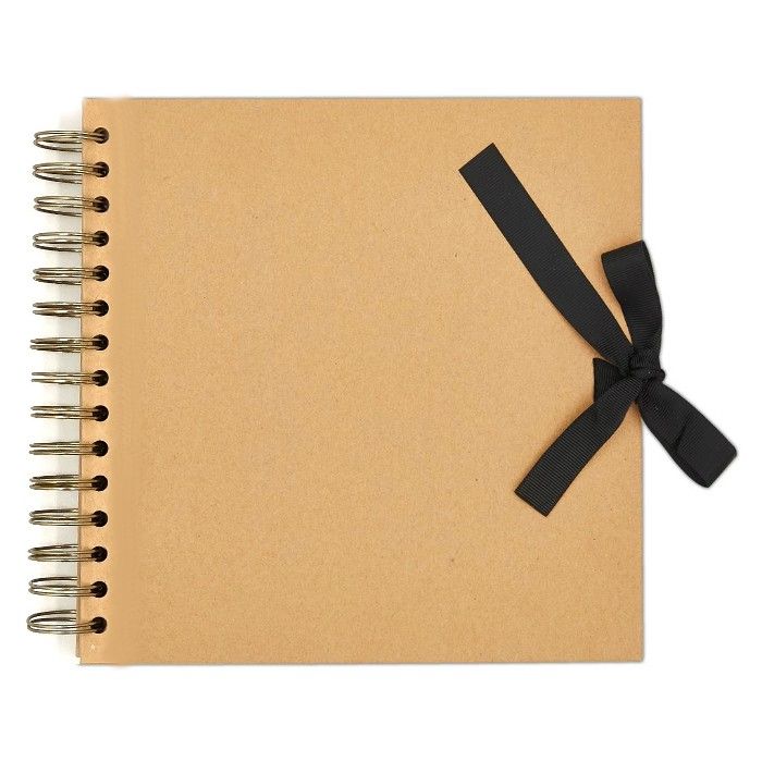Kartonové album k dotvoření, kovová spirálová vazba, opatřeno stuhou.