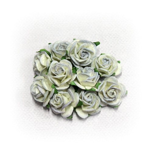 Papírové kytičky - OPEN ROSES / ANTIQUE BLUE 20 mm (10 ks)