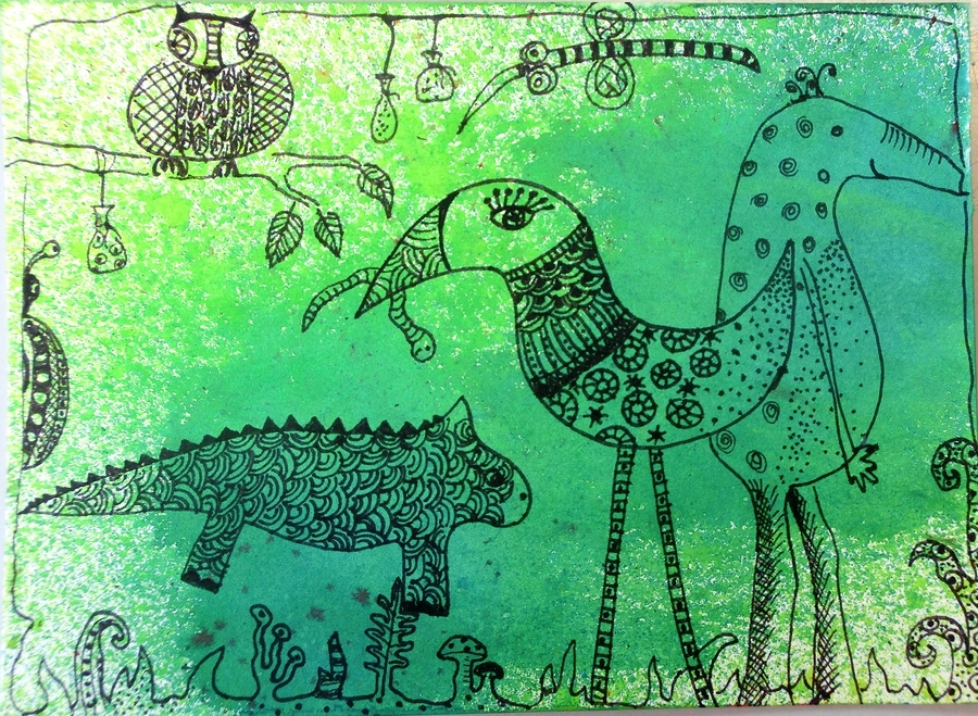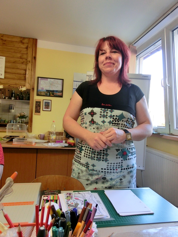 Nečekaný úspěch měl i workshop Irisky - doodling a zentangle. Po chvíli cviku holky dovedly své "čmárání" k dokonalosti a vznikaly kresbičky hodné titulní stránky artjournalu :-) Bylo super, jak vás to bavilo, holky kreslily až do nedělního odjezdu každou volnou chvilku. Stačí totiž jen papír a černý fix. Technika si právem zasloužila označení relaxační a některé přítomné se shodly, že doodlingem budou podepisovat poznámky nebo pětky v žákovské :-)