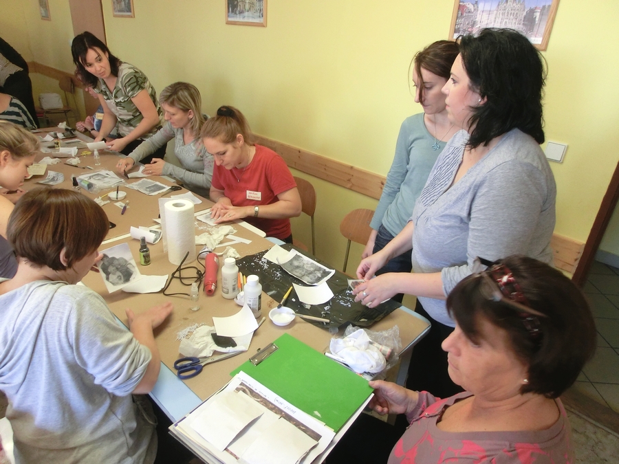 Můj workshop se opět nesl v tradičním "technickém" duchu - transfer obrázků na plátno. ART ode mně nikdo čekat nemůže, zaměřením jsem tomuto stylu na hony vzdálená :-) I tak jsem se musela překonat, protože nepořádku bylo opravdu hooodně a to já nerada... ruce zalepené od transferového média a spousta odroleného papíru na stole už byly na hranici mých možností :-)