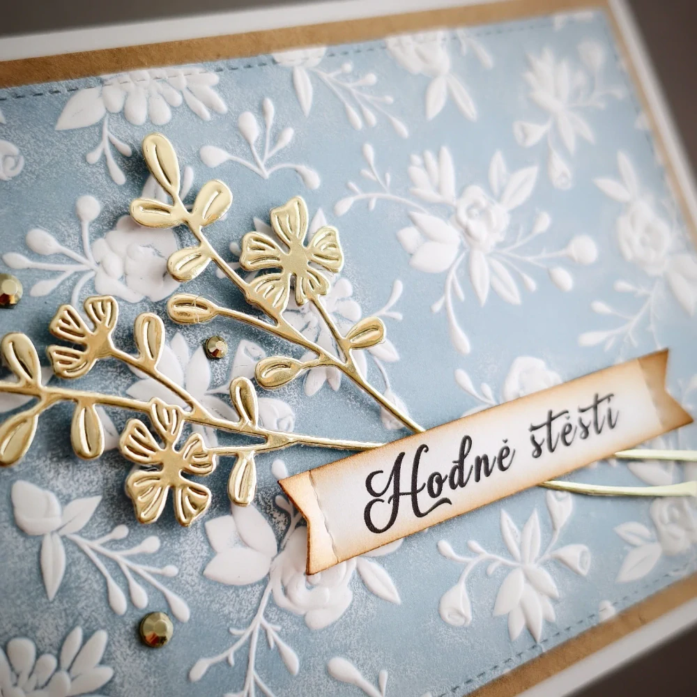 PŘÁNÍ K NAROZENINÁM / SVATEBNÍ - modré embossované "Hodně štěstí"