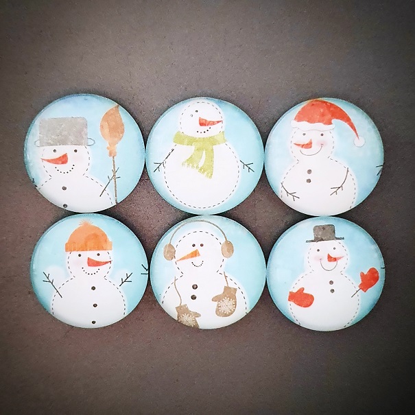 SKLENĚNÉ MAGNETKY (6 ks) - sněhuláci modrý podklad, ruční výrobaSkladem: 2150 Kč124 Kč bez DPH