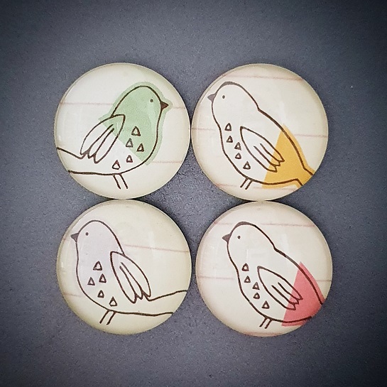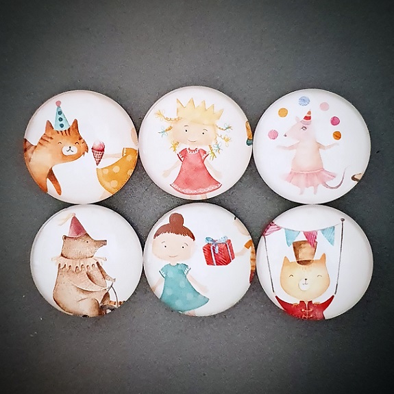 Originální ručně vyrobené magnetky z dílny Pretty Papers. Materiál: sklo, papír, feritový magnet. Velikost: 25 mm. 6 ks v sadě.