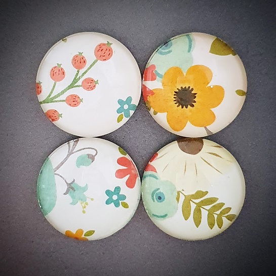 Originální ručně vyrobené magnetky z dílny Pretty Papers. Materiál: sklo, papír, feritový magnet. Velikost: 25 mm. 4 ks v sadě.
