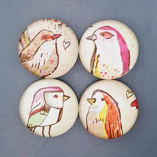 Originální ručně vyrobené magnetky z dílny Pretty Papers. Materiál: sklo, papír, feritový magnet. Velikost: 25 mm. 4 ks v sadě.