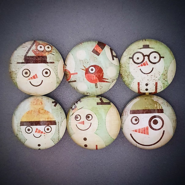 Originální ručně vyrobené magnetky z dílny Pretty Papers. Materiál: sklo, papír, feritový magnet. Velikost: 25 mm. 6 ks v sadě.