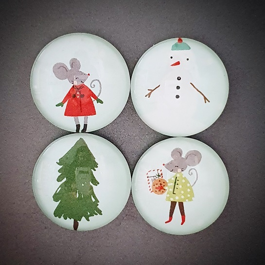 Originální ručně vyrobené magnetky z dílny Pretty Papers. Materiál: sklo, papír, feritový magnet. Velikost: 25 mm. 4 ks v sadě.