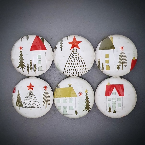 Originální ručně vyrobené magnetky z dílny Pretty Papers. Materiál: sklo, papír, feritový magnet. Velikost: 25 mm. 6 ks v sadě.