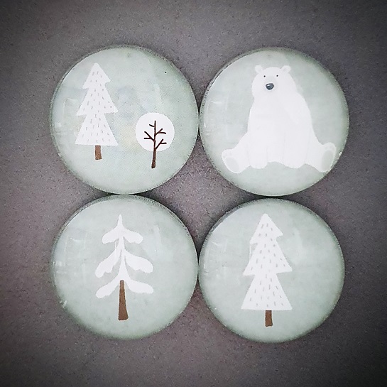 Originální ručně vyrobené magnetky z dílny Pretty Papers. Materiál: sklo, papír, feritový magnet. Velikost: 25 mm. 4 ks v sadě.