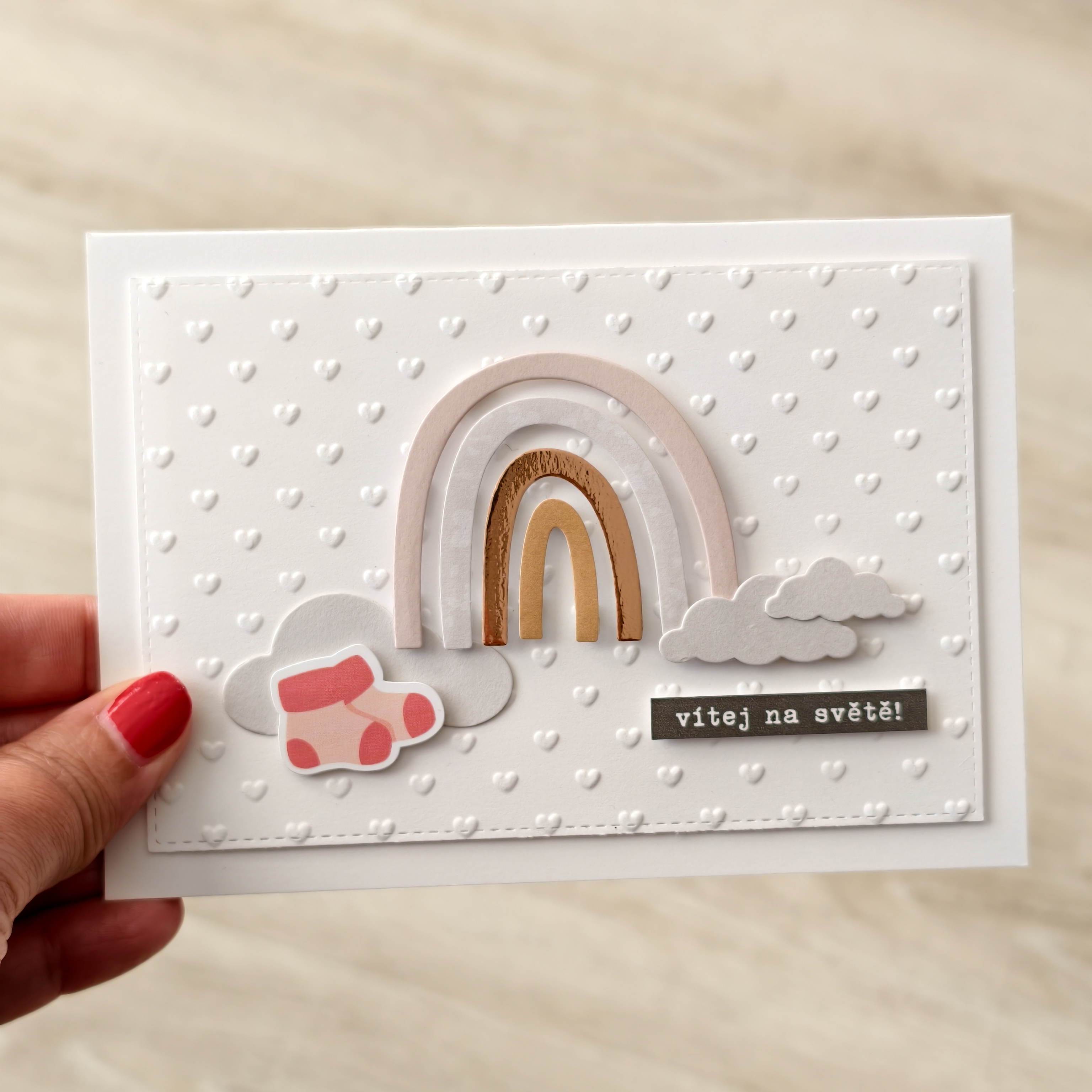 PŘÁNÍ K NAROZENÍ HOLČIČKY - duha a ponožtičky