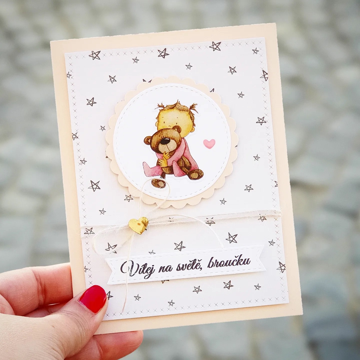 PŘÁNÍ K NAROZENÍ HOLČIČKY - miminko s medvídkemSkladem: 1120 Kč99 Kč bez DPH