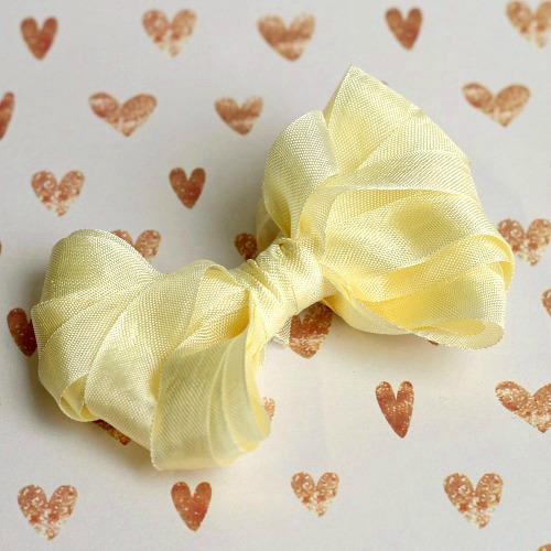 Světlé odstíny můžete barvit pomocí inkoustů a sprejů na vodní bázi. Naprosto dokonale stuha vypadá, pokud ji ve vlhkém stavu pořádně zmačkáte a necháte uschnout.