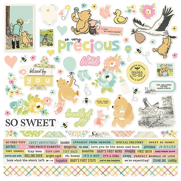 Samolepky pro scrapbooking a cardmaking - ke zdobení scrapbookových stránek, přáníček nebo Project Life. Velikost archu: 30,5 x 30,5 cm.